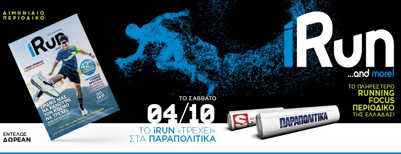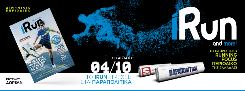 Το Σάββατο 4 Οκτωβρίου 2025, το διμηνιαίο περιοδικό iRun …and more! «τρέχει» για πρώτη φορά ως ένθετο στην εφημερίδα ΠΑΡΑΠΟΛΙΤΙΚΑ!