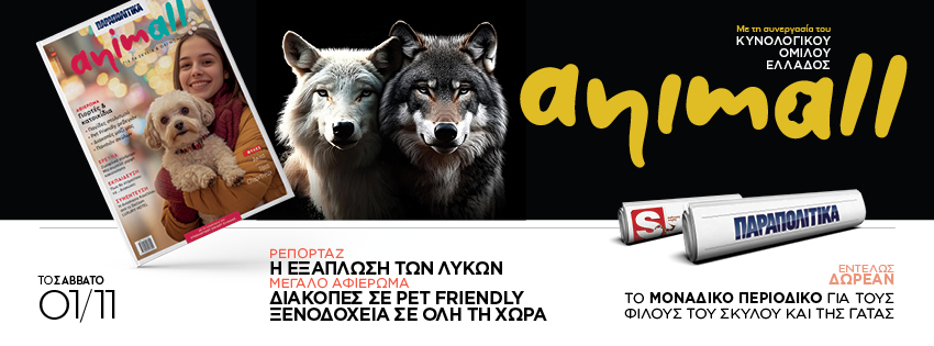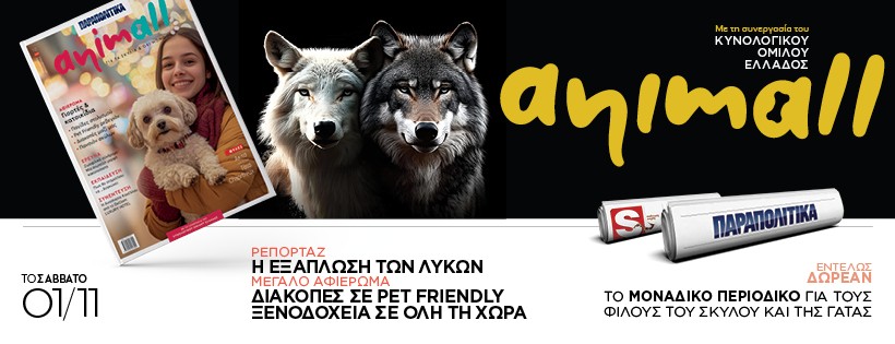 Aυτό το Σάββατο, 1 Νοεμβρίου, κυκλοφορεί το «ANIMALL», το μοναδικό περιοδικό για τους φίλους του σκύλου και της γάτας, ΕΝΤΕΛΩΣ ΔΩΡΕΑΝ, σε πολυτελή έκδοση με την εφημερίδα «ΠΑΡΑΠΟΛΙΤΙΚΑ».