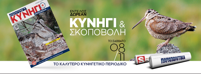 Μη χάσετε το νέο τεύχος από το καλύτερο κυνηγετικό περιοδικό το Σάββατο 08.11, «ΚYNHΓΙ ΚΑΙ ΣΚΟΠΟΒΟΛΗ», εντελώς δωρεάν, αποκλειστικά με τα ΠΑΡΑΠΟΛΙΤΙΚΑ.