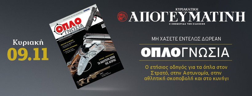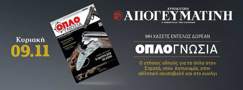 Το μοναδικό περιοδικό για τα όπλα στον Στρατό, στην Αστυνομία, στην αθλητική σκοποβολή και το κυνήγι, κυκλοφορεί εντελώς δωρεάν μαζί με την κυριακάτικη Απογευματινή 09.11.