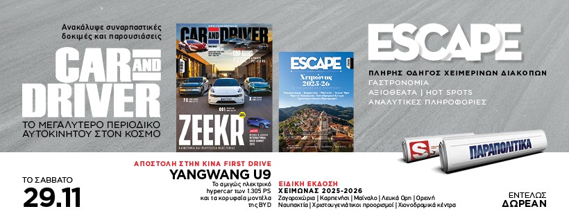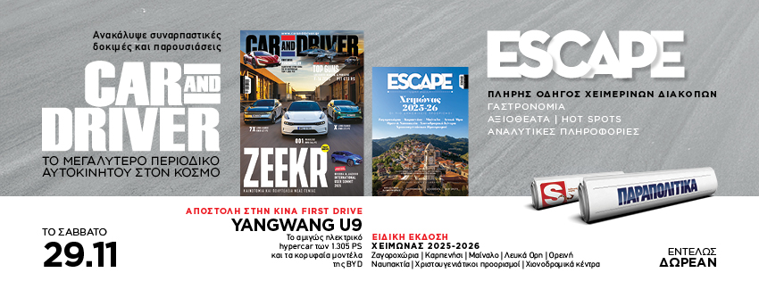 Μη χάσετε το μεγαλύτερο περιοδικό αυτοκινήτου στον κόσμο “Car and Driver” και τον πλήρη οδηγό για τις χειμερινές σας διακοπές “Escape Winter 2025-26”, εντελώς δωρεάν, αποκλειστικά με τα Παραπολιτικά το Σάββατο 29/11