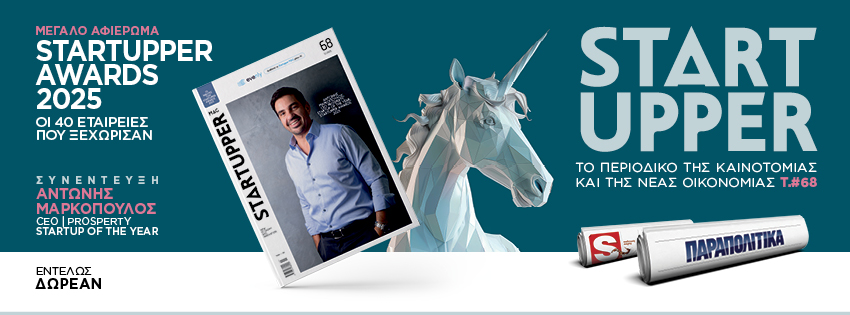 Το Σάββατο 20 Δεκεμβρίου, μη χάσετε αποκλειστικά με τα ΠΑΡΑΠΟΛΙΤΙΚΑ το περιοδικό STARTUPPER MAG, το περιοδικό της Καινοτομίας και της Νέας Οικονομίας, το πρώτο και ταυτόχρονα το μοναδικό έντυπο το οποίο κυκλοφορεί με στόχο να καταγράψει την επικαιρότητα και τη θεματολογία της ελληνικής Startup σκηνής, καθώς και όλες τις εξελίξεις στον κόσμο των επιχειρήσεων και της τεχνολογίας.